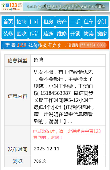 男女不限,有工作经验优先,会不会都行,主要捡桌子刷碗,小时工也要,工资面议 15184563987 微信同步长期工作时间晚5-12小时工最低4个小时 【电话咨询时,请一定说明在望奎信息网看到的,谢谢!】 |