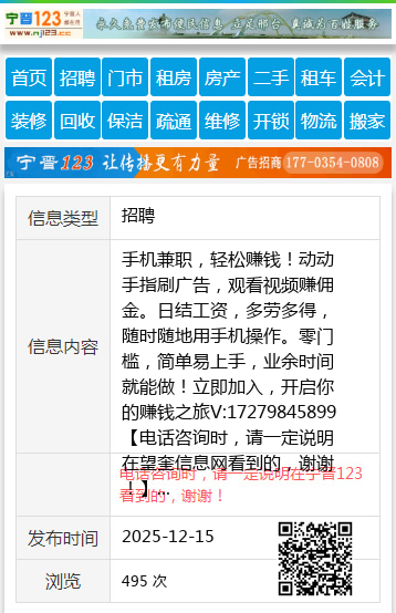 手机兼职,轻松赚钱!动动手指刷广告,观看视频赚佣金。日结工资,多劳多得,随时随地用手机操作。零门槛,简单易上手,业余时间就能做!立即加入,开启你的赚钱之旅V:17279845899 【电话咨询时,请一定说明在望奎信息网看到的,谢谢!】 |