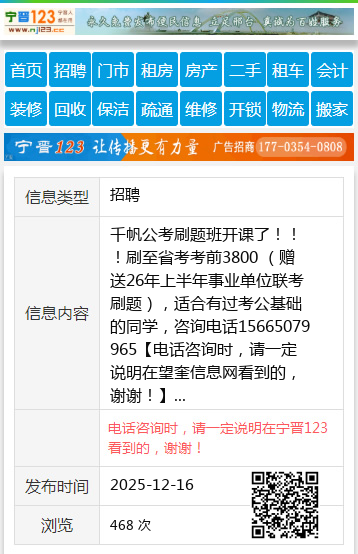 千帆公考刷题班开课了!!!刷至省考考前3800 (赠送26年上半年事业单位联考刷题),适合有过考公基础的同学,咨询电话15665079965 【电话咨询时,请一定说明在望奎信息网看到的,谢谢!】 |