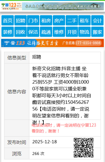 新奇文化招聘:抖音主播 坐着不说话就行男女不限年龄25到55岁 工资4000到10000不等居家就可以播全职兼职都可每天3小时以上时间自由