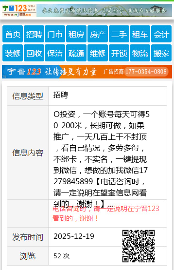O投姿,一个账号每天可得50-200米,长期可做,如果推广,一天几百上千不封顶,看自己情况,多劳多得,不绑卡,不实名,一键提现到微信,想做的加我微信17279845899 【电话咨询时,请一定说明在望奎信息网看到的,谢谢!】 |