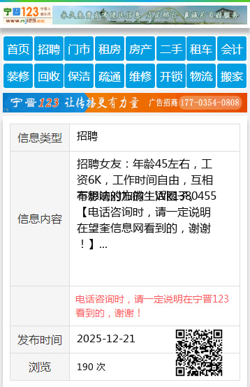 免责声明:本栏目信息由网友自行发布,望奎信息网不承担任何责任!提高警惕,谨防诈骗!做推广、做信息置顶!请加望奎信息网客服微信:wangku0455