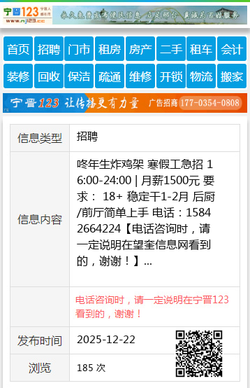 咚年生炸鸡架 寒假工急招 16:00-24:00 | 月薪1500元 要求: 18+ 稳定干1-2月 后厨/前厅简单上手 电话:15842664224 【电话咨询时,请一定说明在望奎信息网看到的,谢谢!】 |