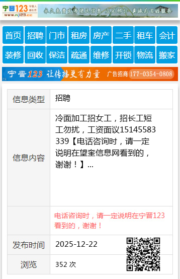 冷面加工招女工,招长工短工勿扰,工资面议15145583339