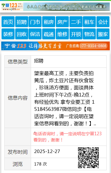望奎最高工资,主要负责拍黄瓜,炸土豆片还有伙食饭,珍珠汤方便面,面谈具体上班时间下午2点-晚12点,有经验优先 拿专业要工资 15184563987微信同步 【电话咨询时,请一定说明在望奎信息网看到的,谢谢!】 |