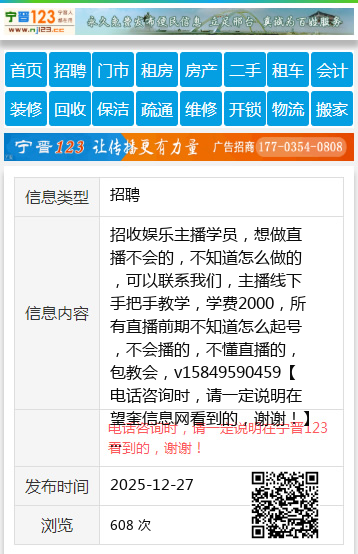 招收娱乐主播学员,想做直播不会的,不知道怎么做的,可以联系我们,主播线下手把手教学,学费2000,所有直播前期不知道怎么起号,不会播的,不懂直播的,包教会,v15849590459 【电话咨询时,请一定说明在望奎信息网看到的,谢谢!】 |