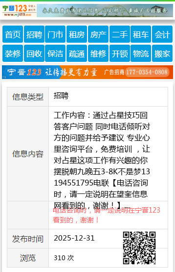 工作内容:通过占星技巧回答客户问题 同时电话倾听对方的问题并给予建议 专业心里咨询平台,免费培训 ,让对占星这项工作有兴趣的你摆脱朝九晚五3-8K不是梦13194551795电联 【电话咨询时,请一定说明在望奎信息网看到的,谢谢!】 |