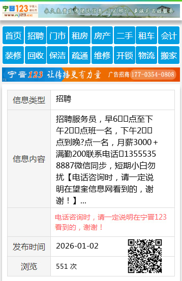 招聘服务员,早6️⃣点至下午2️⃣点班一名,下午2️⃣点到晚?点一名,月薪3000+满勤200联系电话☎13555358887微信同步,短期小白勿扰 【电话咨询时,请一定说明在望奎信息网看到的,谢谢!】 |