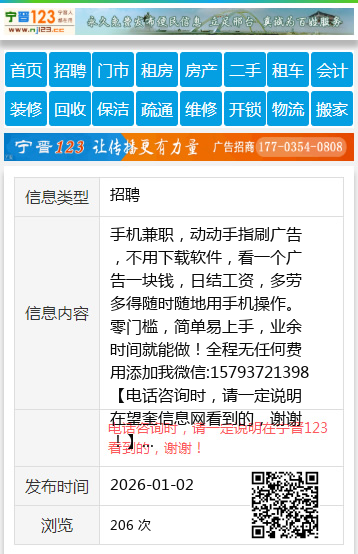 手机兼职,动动手指刷广告,不用下载软件,看一个广告一块钱,日结工资,多劳多得随时随地用手机操作。零门槛,简单易上手,业余时间就能做!全程无任何费用添加我微信:15793721398 【电话咨询时,请一定说明在望奎信息网看到的,谢谢!】 |