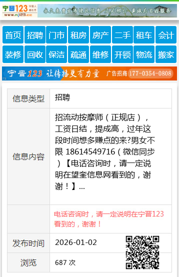 招流动按摩师(正规店),工资日结,提成高,过年这段时间想多赚点的来?男女不限 18614549716(微信同步)