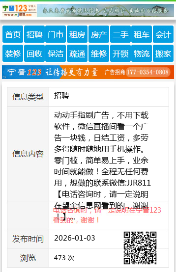 动动手指刷广告,不用下载软件,微信直播间看一个广告一块钱,日结工资,多劳多得随时随地用手机操作。零门槛,简单易上手,业余时间就能做!全程无任何费用,想做的联系微信:JJR811 【电话咨询时,请一定说明在望奎信息网看到的,谢谢!】 |