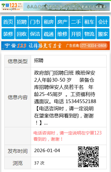 政府部门招聘白班 晚班保安2人年龄30-50 岁 装备仓库招聘保安人员若干名 年龄25-45周岁 。工资福利待遇面议。电话 15344552188 【电话咨询时,请一定说明在望奎信息网看到的,谢谢!】 |