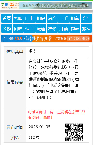 联系电话13604554384(微信同步) 【电话咨询时,请一定说明在望奎信息网看到的,谢谢!】 |