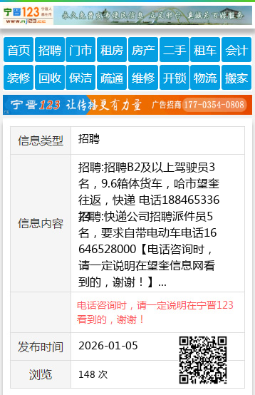 招聘:快递公司招聘派件员5名,要求自带电动车电话16646528000 【电话咨询时,请一定说明在望奎信息网看到的,谢谢!】 |