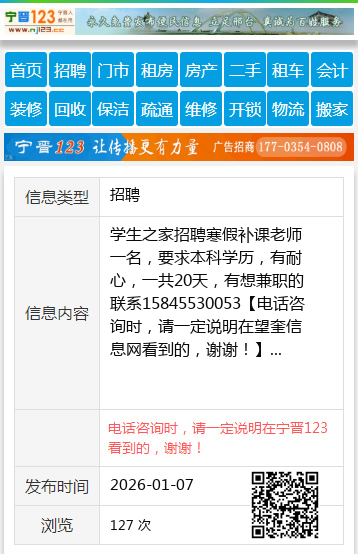 学生之家招聘寒假补课老师一名,要求本科学历,有耐心,一共20天,有想兼职的联系15845530053