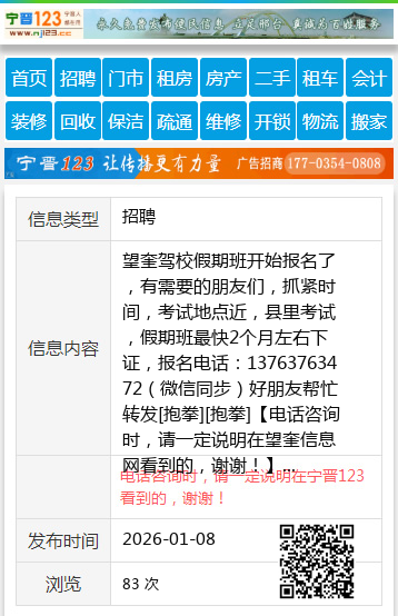 望奎驾校假期班开始报名了,有需要的朋友们,抓紧时间,考试地点近,县里考试,假期班最快2个月左右下证,报名电话:13763763472(微信同步)好朋友帮忙转发[抱拳][抱拳] 【电话咨询时,请一定说明在望奎信息网看到的,谢谢!】 |