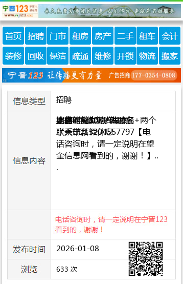 联系☎️13204557797 【电话咨询时,请一定说明在望奎信息网看到的,谢谢!】 |