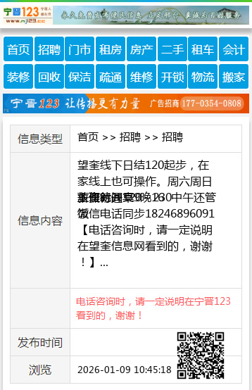 | 防骗提醒: | 望奎信息网(www.wangkui.cc)提醒您:手工活、网络兼职、刷单,都是骗子!凡以各种名义收取费用的都是骗子!找工作是往兜里挣钱,让你往外掏钱的都是骗子!异地招聘请提高警惕,谨防诈骗! |