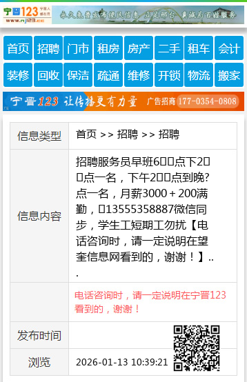 招聘服务员早班6️⃣点下2️⃣点一名,下午2️⃣点到晚?点一名,月薪3000+200满勤,☎13555358887微信同步,学生工短期工勿扰 【电话咨询时,请一定说明在望奎信息网看到的,谢谢!】 |
