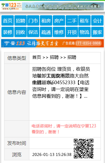 招聘各岗位 理货员,收银员,装卸工男女不限 地址:大医院南二路大自然生鲜超市。 电话:16604552333