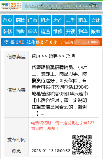 地址:鑫缘商都东侧华辰超市 【电话咨询时,请一定说明在望奎信息网看到的,谢谢!】 |