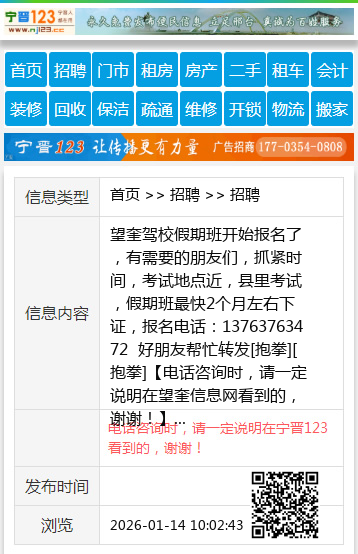 望奎驾校假期班开始报名了,有需要的朋友们,抓紧时间,考试地点近,县里考试,假期班最快2个月左右下证,报名电话:13763763472 好朋友帮忙转发[抱拳][抱拳] 【电话咨询时,请一定说明在望奎信息网看到的,谢谢!】 |