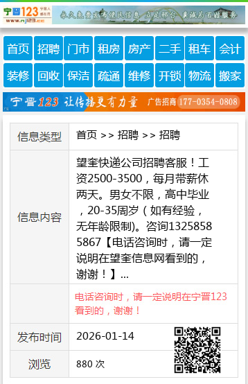 免责声明:本栏目信息由网友自行发布,望奎信息网不承担任何责任!提高警惕,谨防诈骗!做推广、做信息置顶!请加望奎信息网客服微信:wangku0455