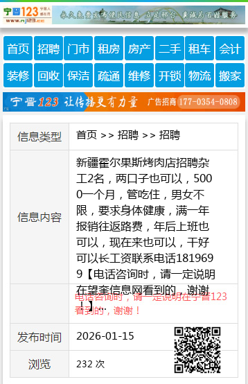 新疆霍尔果斯烤肉店招聘杂工2名,两口子也可以,5000一个月,管吃住,男女不限,要求身体健康,满一年报销往返路费,年后上班也可以,现在来也可以,干好可以长工资联系电话1819699