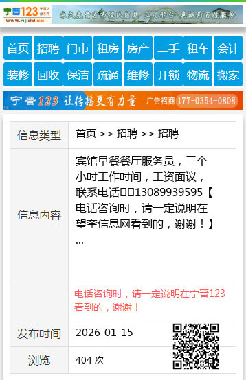 宾馆早餐餐厅服务员,三个小时工作时间,工资面议,联系电话☎️13089939595