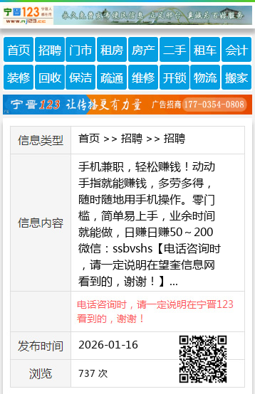 手机兼职,轻松赚钱!动动手指就能赚钱,多劳多得,随时随地用手机操作。零门槛,简单易上手,业余时间就能做,日赚日赚50~200 微信:ssbvshs