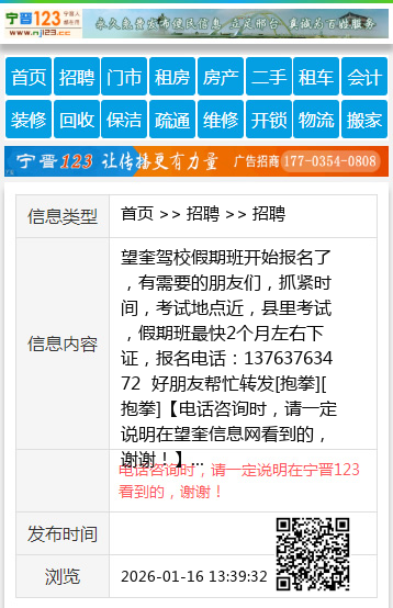 望奎驾校假期班开始报名了,有需要的朋友们,抓紧时间,考试地点近,县里考试,假期班最快2个月左右下证,报名电话:13763763472 好朋友帮忙转发[抱拳][抱拳] 【电话咨询时,请一定说明在望奎信息网看到的,谢谢!】 |