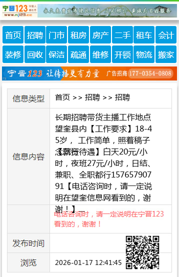 长期招聘带货主播工作地点望奎县内【工作要求】18-45岁, 工作简单,照着稿子念就行 【薪资待遇】白天20元/小时,夜班27元/小时,日结、兼职、全职都行15765790791