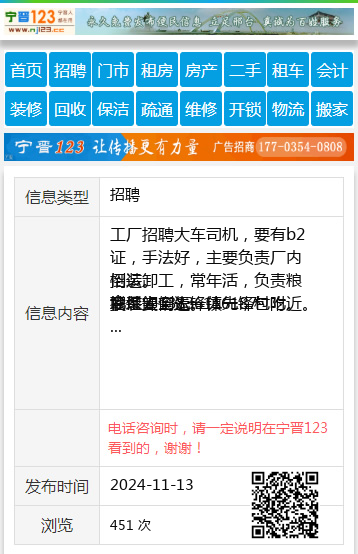 招聘大车司机 工资面议 电话13796562578