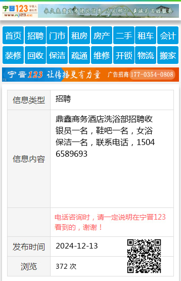 鼎鑫商务酒店洗浴部招聘收银员一名,鞋吧一名,女浴保洁一名,联系电话,15046589693