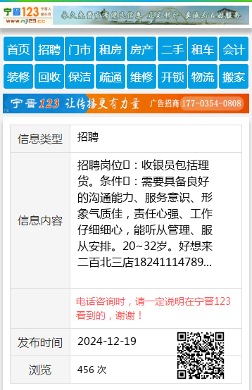 招聘岗位:收银员包括理货。条件:需要具备良好的沟通能力、服务意识、形象气质佳,责任心强、工作仔细细心,能听从管理、服从安排。20~32岁。好想来二百北三店18241114789