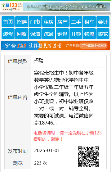 寒假班招生中!初中各年级数学英语物理化学招生中,小学仅收二年级三年级五年级学生全科辅导。以上均为小班授课,初中毕业班仅收一对一或一对二辅导全科。需要的可试课。电话微信同步18746
