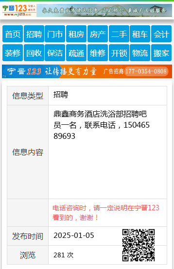 鼎鑫商务酒店洗浴部招聘吧员一名,联系电话,15046589693