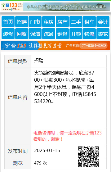火锅店招聘服务员,底薪3700+满勤300+酒水提成+每月2个半天休息,保底工资4600以上不封顶,电话15845534220 【电话咨询时,请一定说明在望奎信息网看到的,谢谢!】 |