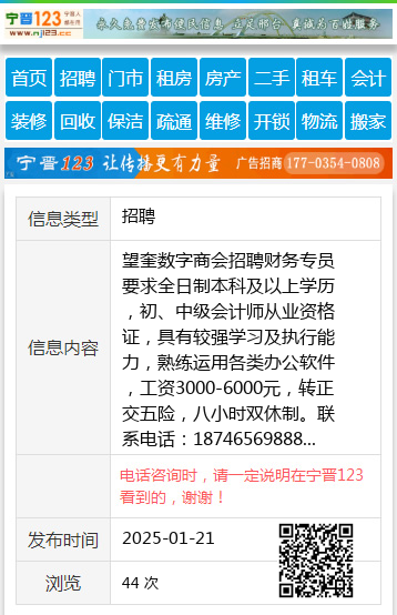 | 防骗提醒: | 望奎信息网(www.wangkui.cc)提醒您:手工活、网络兼职、刷单,都是骗子!凡以各种名义收取费用的都是骗子!找工作是往兜里挣钱,让你往外掏钱的都是骗子!异地招聘请提高警惕,谨防诈骗! |