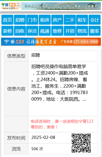| 防骗提醒: | 望奎信息网(www.wangkui.cc)提醒您:手工活、网络兼职、刷单,都是骗子!凡以各种名义收取费用的都是骗子!找工作是往兜里挣钱,让你往外掏钱的都是骗子!异地招聘请提高警惕,谨防诈骗! |