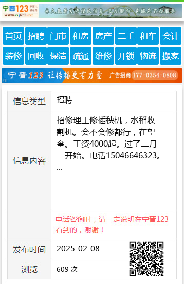 免责声明:本栏目信息由网友自行发布,望奎信息网不承担任何责任!提高警惕,谨防诈骗!做推广、做信息置顶!请加望奎信息网客服微信:wangku0455