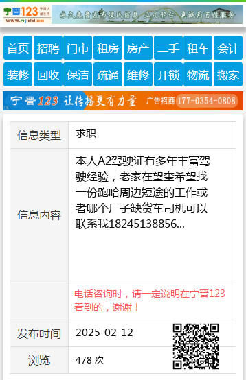 本人A2驾驶证有多年丰富驾驶经验,老家在望奎希望找一份跑哈周边短途的工作或者哪个厂子缺货车司机可以联系我18245138856 【电话咨询时,请一定说明在望奎信息网看到的,谢谢!】 |