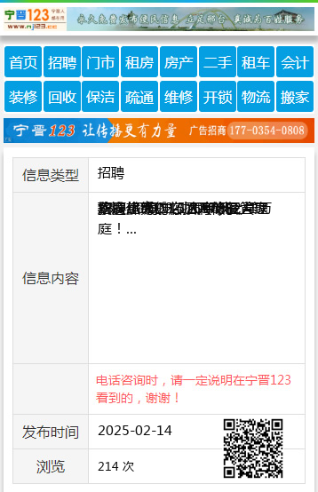 | 防骗提醒: | 望奎信息网(www.wangkui.cc)提醒您:手工活、网络兼职、刷单,都是骗子!凡以各种名义收取费用的都是骗子!找工作是往兜里挣钱,让你往外掏钱的都是骗子!异地招聘请提高警惕,谨防诈骗! |