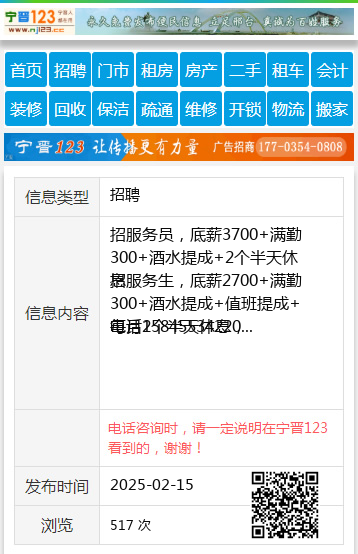 招服务生,底薪2700+满勤300+酒水提成+值班提成+每月2个半天休息,