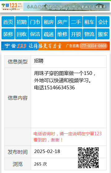 用珠子穿的图案做一个150,外地可以快递和视频学习。电话15146634536