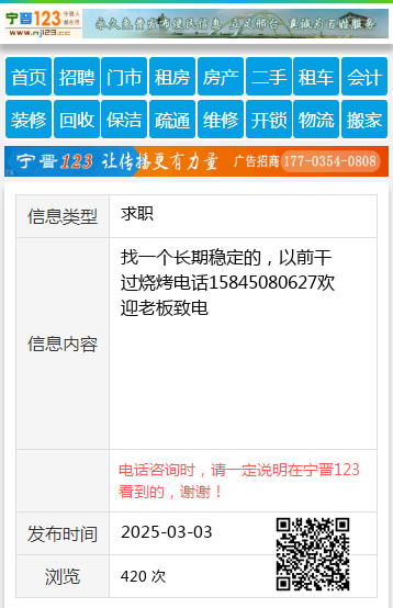 找一个长期稳定的,以前干过烧烤电话15845080627欢迎老板致电