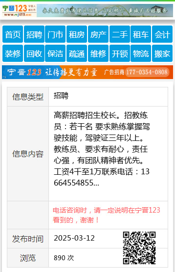 高薪招聘招生校长。招教练员:若干名 要求熟练掌握驾驶技能,驾驶证三年以上。教练员、要求有耐心,责任心强,有团队精神者优先。工资4千至1万联系电话:13664554855