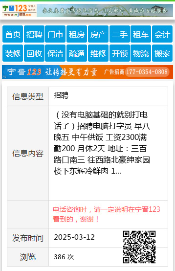 (没有电脑基础的就别打电话了)招聘电脑打字员 早八晚五 中午供饭 工资2300满勤200 月休2天 地址:三百路口南三 往西路北豪绅家园楼下东辉冷鲜肉 1 【电话咨询时,请一定说明在望奎信息网看到的,谢谢!】 |