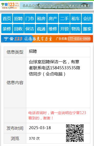台球室招聘保洁一名,有意者联系电话15845533535微信同步(会点电脑)