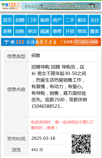招聘导购 招聘 导购员,店长 男女不限年龄30-50之间,热爱生活热爱销售工作,有激情,有动力,有爱心。有导购,销售,直方面经验优先。底薪2500,带薪休假15046588523 【电话咨询时,请一定说明在望奎信息网看到的,谢谢!】 |